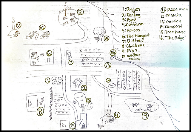 Welcome to Re-Green Permaculture Sanctuary! We will be your tour guides today around this wonderful community. (Feel free to follow along by referencing this map!)