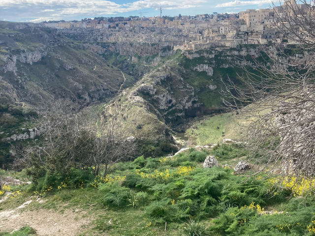 🗻 Exploring in nature: Later in the week we hiked through the previously viewed Gravina with a beautiful view of the Sassi. We were led through old caves and rock churches tucked into the hillside. With an abundance of yellow flowers we can sense that spring is well on its way!