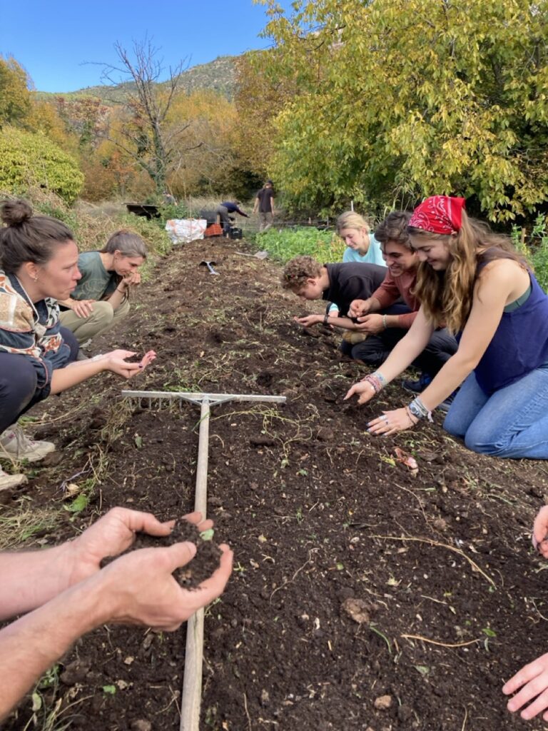 After an amazing week of student-directed travel on Aegina, the group took a train two hours outside of Athens to Akrata. The week was spent at Re-Green, a permaculture community dedicated to the regeneration of Earth. Each day, the group participated in learning activities like garden bed prepping, composting, herbal talks, mushroom talks, and much more set up by the wonderful hosts, Debo, Kyle, Emily, and Nejma. Remembrance and reflection circles were held daily to cherish the past while preparing for the future. Each day, the group had an African drum circle and, on the final day, the whole community came for a performance followed by a pizza party.