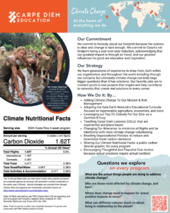 Carpe Diem recognizes that the scale of the problem far exceeds any individual's ability to make a significant impact ... unless it is connected to a larger effort. Thus, our work is aimed at inspiring students through specific experiences of positive change, and ultimately driving community and thus political change, that makes a climate strategy feasible at-scale. At the end of the day, it will be the millions of small and large efforts, inspirations, considerations, regenerative agricultural systems, technological advances, ... and politics, that succeed.