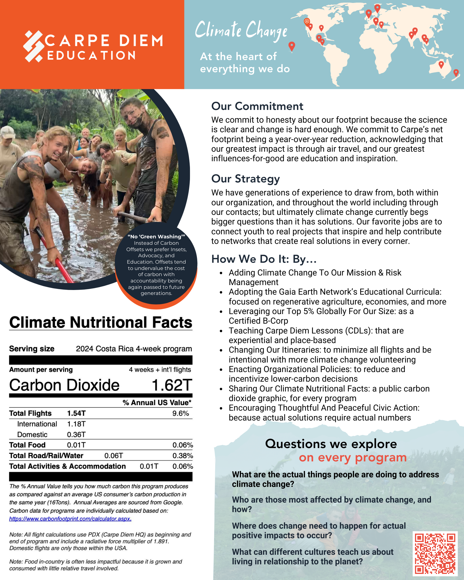 While we know there are countless positive outcomes that come from a program like ours, we must also weigh its negative impacts ... especially those related to climate change. We believe in first being open and honest, acknowledging the extra impacts inherent to international travel. We consider these impacts on every program and feel that we have not just a moral obligation, but also a practical one to add to our students’ learning and hopefully inspire positive change locally and back home.