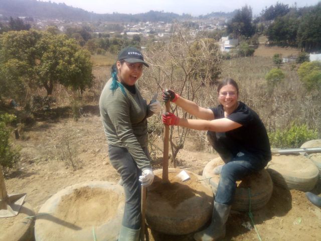 Starting my volunteer work at Long Way Home or more commonly known in Comalapa as the Escuela de Llantas was hard work made enjoyable by the surrounding volunteers and workers. Currently, there are two projects being worked on: the science lab and tire wall. The tire wall was by far the one of the most energy consuming activities I have participated in. That said, compacting tires was made fun by the radio blasting a Guatemalan music and news, making plans to visit workers families to learn how to make atol or tortillas, and cheering each other on as we finish the last few tires of the day.